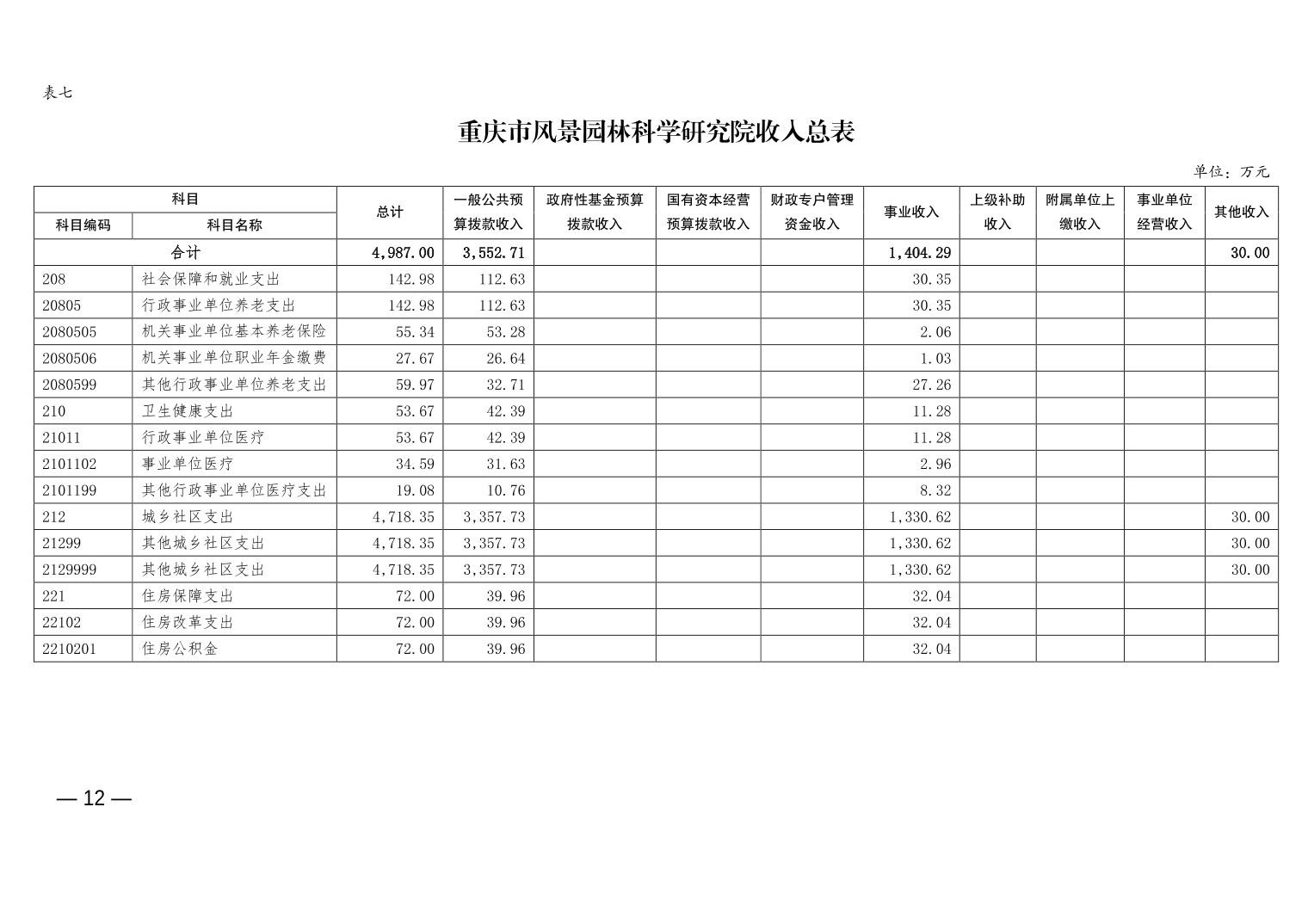 重庆市风景园林科学研究院2022年单位预算情况说明