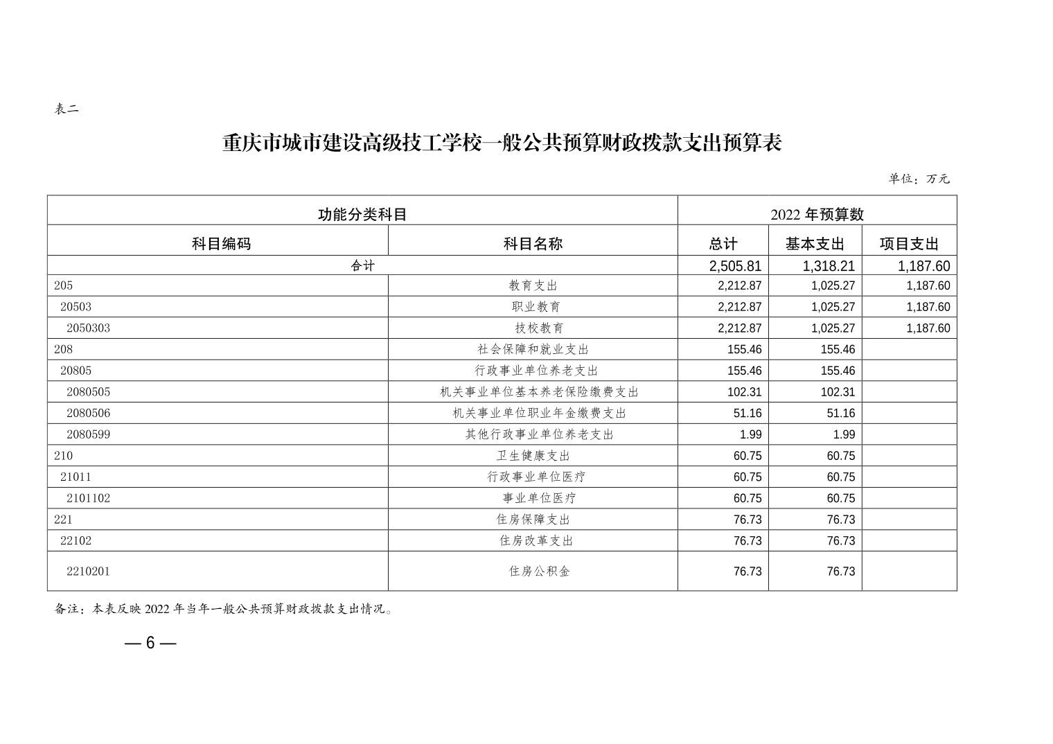 重庆市城市建设高级技工学校2022年单位预算情况说明