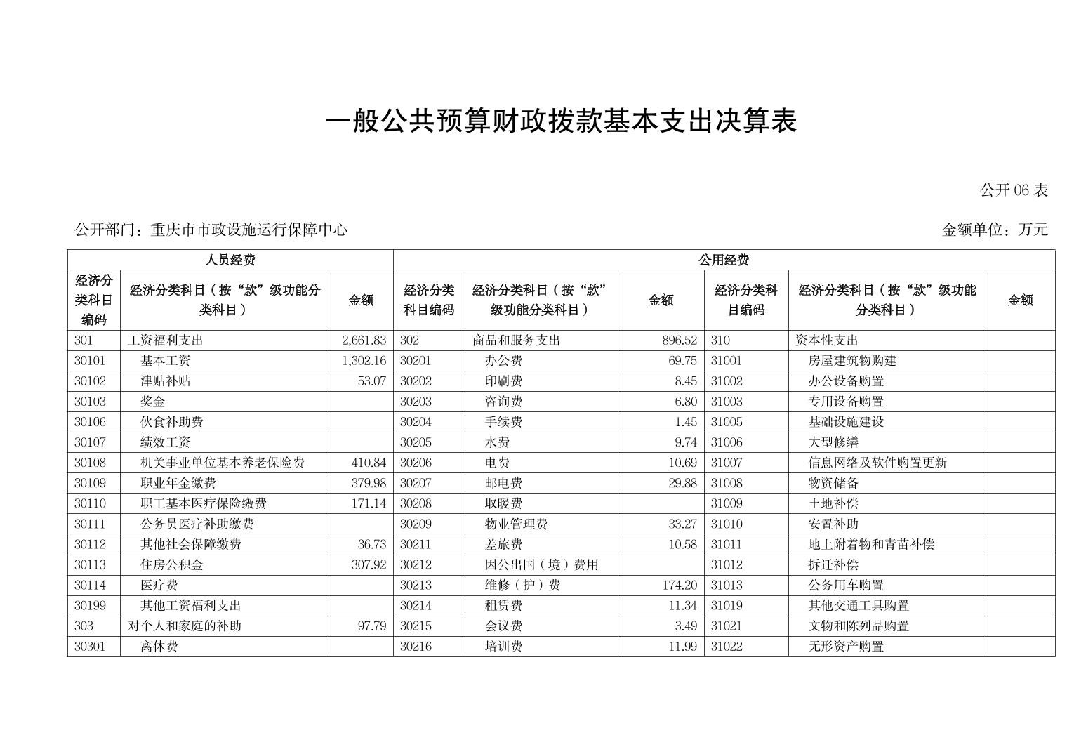 重庆市市政设施运行保障中心2021年度部门决算情况说明