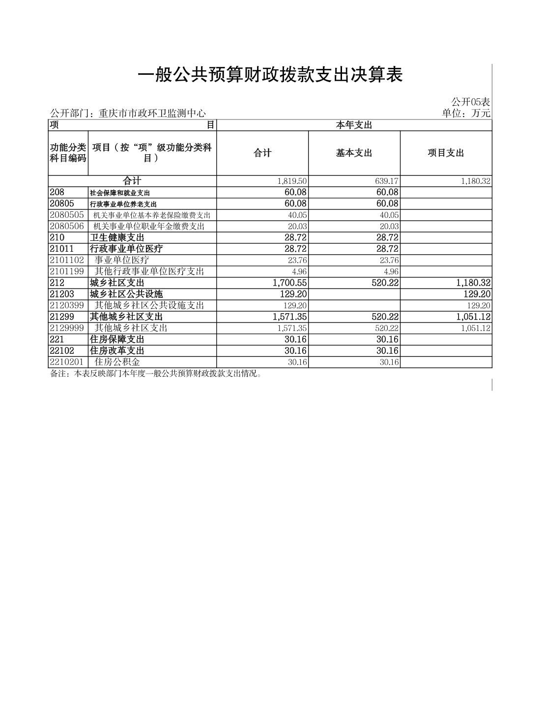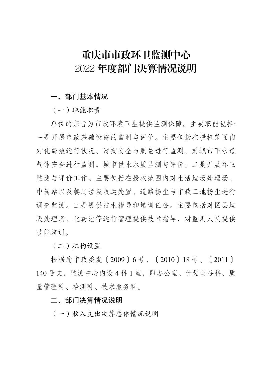 重庆市市政环卫监测中心2022年度部门决算情况说明