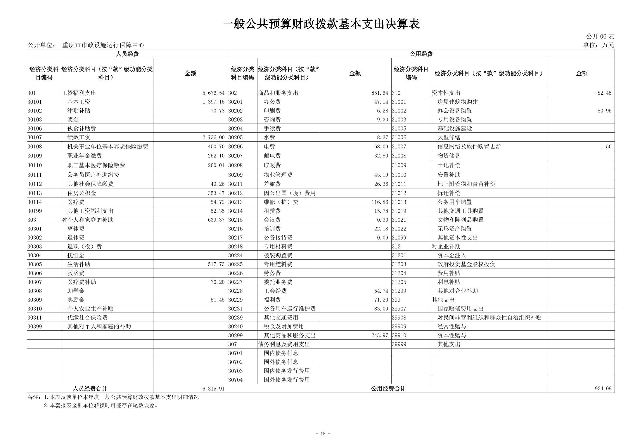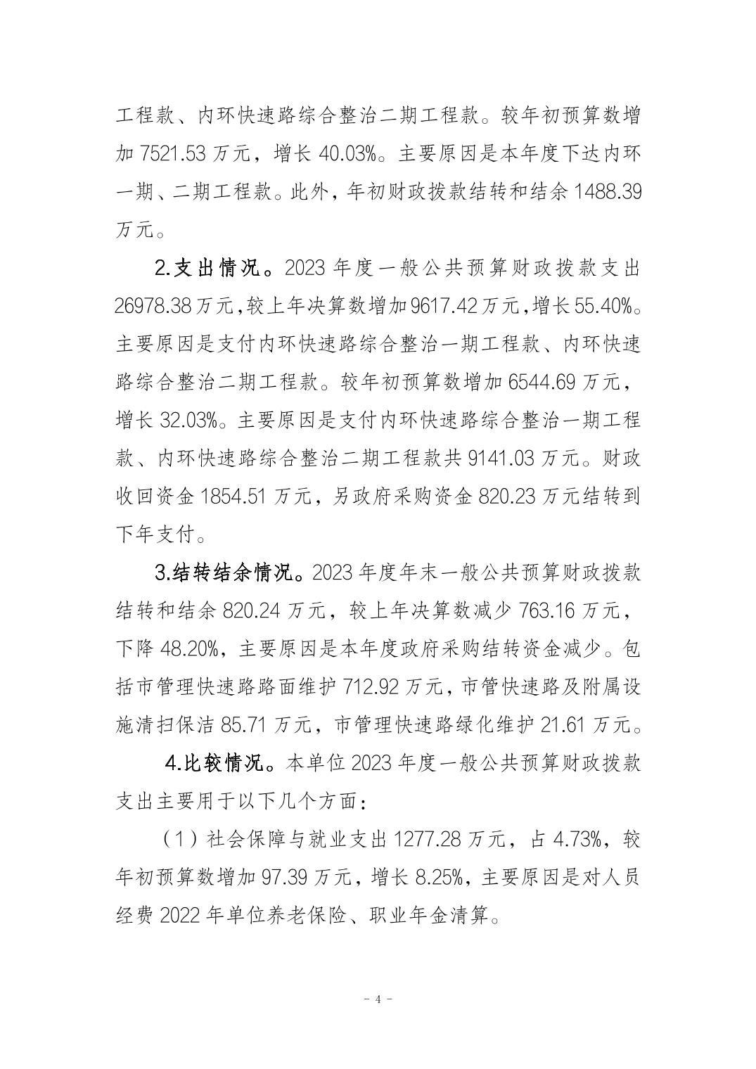 重庆市市政设施运行保障中心2023年度决算公开说明