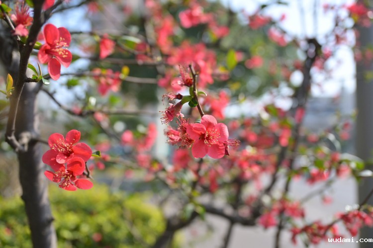 漫步至江北嘴中央公园,白玉兰已进入盛花期,花朵形似展翅的白鸽,在蓝天下显得圣洁典雅。三洞桥附近的贴梗海棠也不示弱,明艳的猩红色花朵压满枝头,花瓣呈不规则形状,像极了古画中的工笔花卉。